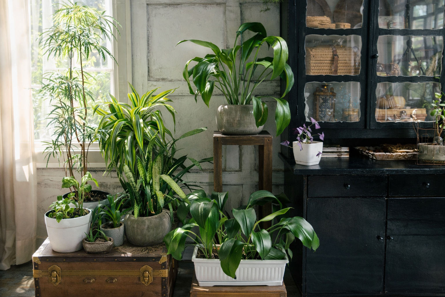 3. ์๋ฌผ๊ณผ ์์ฐ๊ด (Biophilic) ๋จ์ํ ํ๋ถ ํ๋ ๋๋ ์์ค์ ๋์ด, ํ์ด์ ๊ฐ๋ ๋ค์ด๊ณ ์๋ฌผ์ ๊ณต๊ฐ์ ์ฃผ์ธ๊ณต์ผ๋ก ์ผ๋ ์๋ฌผ ์ธํ